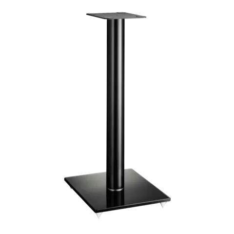 De CONNECT STAND E-601 is een elegante luidsprekerstandaard die speciaal is ontworpen voor compacte kwaliteitsluidsprekers, bijvoorbeeld van DALI of van andere fabrikanten. De voet heeft een solide constructie van glas, en de zuil is gemaakt van aluminium met hoogglanslak. De stalen bovenplaat is voorzien van kleefkussentjes, zodat je luidspreker altijd stevig staat, en de kabels kun je wegwerken in de zuil.