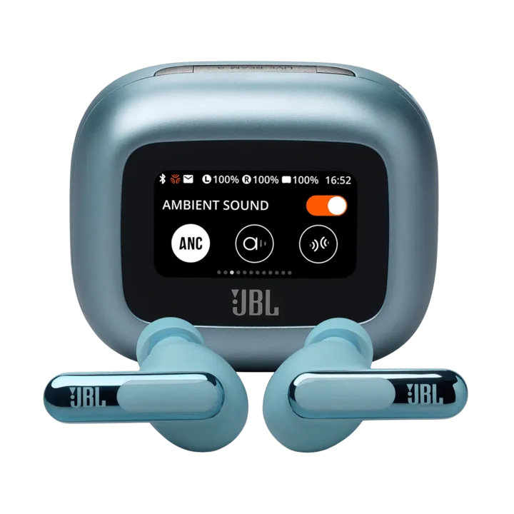 JBL Live Beam 3 – slimme in-ear earbuds met steel-design, 10 uur batterij, Adaptive ANC en oplaadetui met kleuren-display