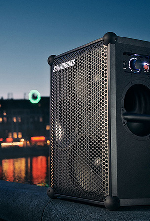De robuuste luidspreker geeft een goed en stabie geluidl, dus als je er zeker van wilt zijn dat je het hele feest lang luide muziek kunt spelen, speel dan op zeker en trakteer jezelf op een grote en krachtige Soundboks.
