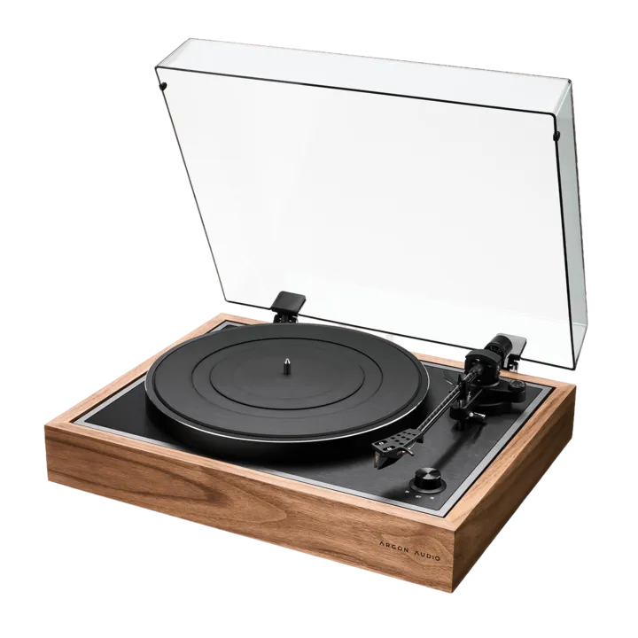 De Argon Audio TT Signature is afgewerkt in echt houtfineer. De Ortofon 2M Black element, stofkap en RCA-kabel worden meegeleverd.