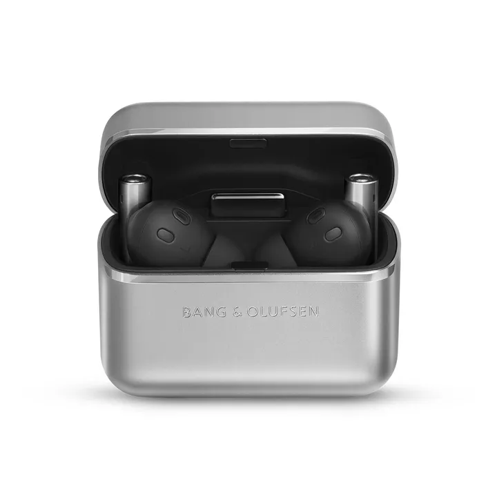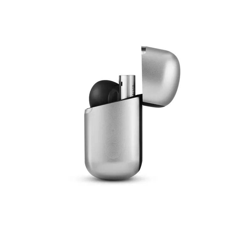 Beo Grace is verkrijgbaar met exclusieve afwerking in gepolijst aluminium. Compacte oplaadcase met mogelijkheid voor draadloos Qi-opladen inbegrepen (Qi-oplader apart verkrijgbaar).