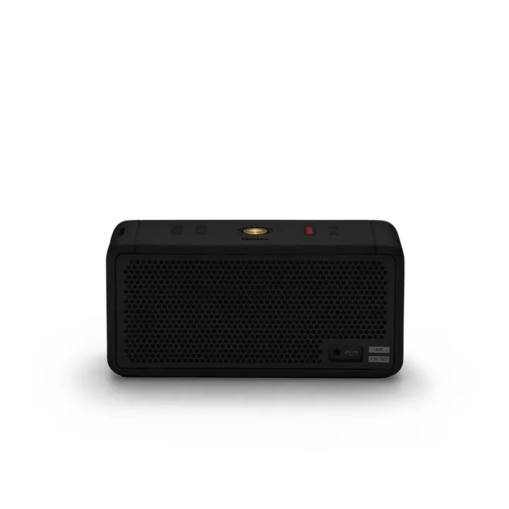 Hij heeft een goed geluid en de rock-‘n’-roll spat ervan af, dankzij het klassieke Marshall-ontwerp. De Middleton heeft hetzelfde ontwerp als de legendarische gitaarversterkers van Marshall, met zwart vinyl en een stoer metalen rooster, het iconische Marshall-logo en een goudkleurige multi-knop aan de bovenkant. En de muziek? Die komt direct van je telefoon via Bluetooth of via de mini-jack-ingang. Bluetooth 5.1 zorgt voor een langere accuduur, en meer stabiliteit en bereik. Dynamic Loudness optimaliseert de balans zodat je altijd het beste geluid krijgt, hoe hard je de luidspreker ook zet.