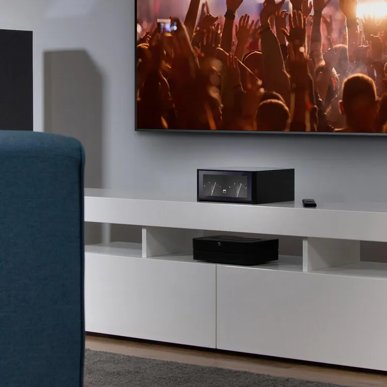 En als extraatje kun je draadloze Bluesound-achterluidsprekers toevoegen, zodat je TV en films echt een nieuwe dimensie krijgen. Als je alles hebt ingesteld activeert de M10 V2 automatisch de surroundfunctie en de achterluidsprekers wanneer hij een surroundsignaal van de TV krijgt. Een geniale en gebruiksvriendelijke functie met spectaculaire mogelijkheden, zonder dat dit gevolgen heeft voor de geluidskwaliteit van je stereomuziek.