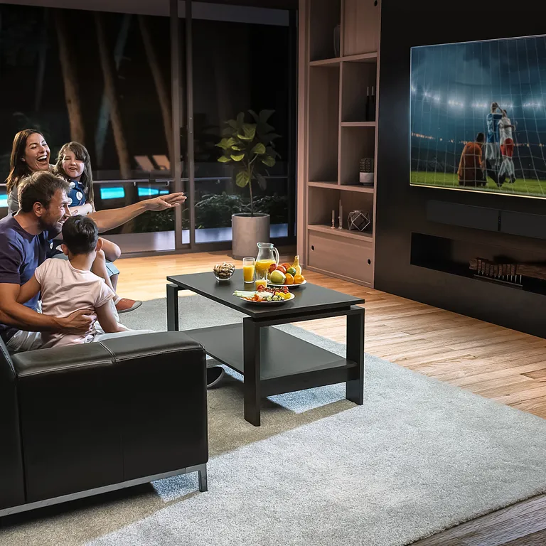 De HDMI-aansluiting heeft eARC, waardoor je hem heel eenvoudig kunt bedienen. De PULSE SOUNDBAR+ gaat samen met de TV aan en uit. Het volume en andere basisfuncties regel je gewoon met de afstandsbediening van de TV zelf. Alles werkt zoals het hoort, en jij hoeft niets te doen, behalve dan genieten van een schitterend geluid.