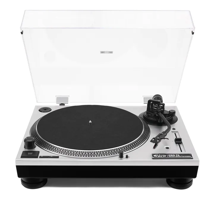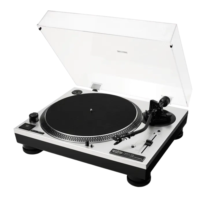 De PRO T1 is niet ontworpen om onopvallend te zijn – hij is gemaakt om gezien, gehoord en gebruikt te worden. Je krijgt alle functies die je van een DJ-draaitafel mag verwachten: direct-drive, snelle opstart, pitch control, ingebouwd naaldlicht, vilten mat voor scratchen en een solide, trillingsdempende constructie zodat je naald niet danst wanneer jij dat doet.