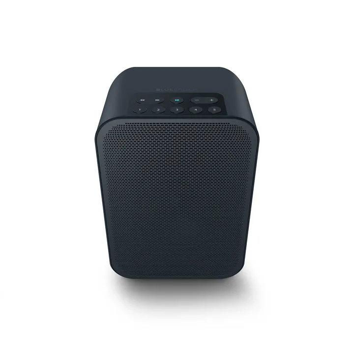 Op de bovenkant zitten de bedieningsknoppen (play/pauze/volume) en vijf fysieke drukknoppen waarmee je een aantal presets kunt kiezen. Iedere knop geeft direct toegang tot een playlist, een internetradiozender, een album of iets anders. Je kunt je favorieten heel eenvoudig instellen via de app – zodat je met één simpele druk op de knop kunt luisteren naar het nieuws of je favoriete artiest, zonder dat je in je zakken hoeft te zoeken naar je smartphone.