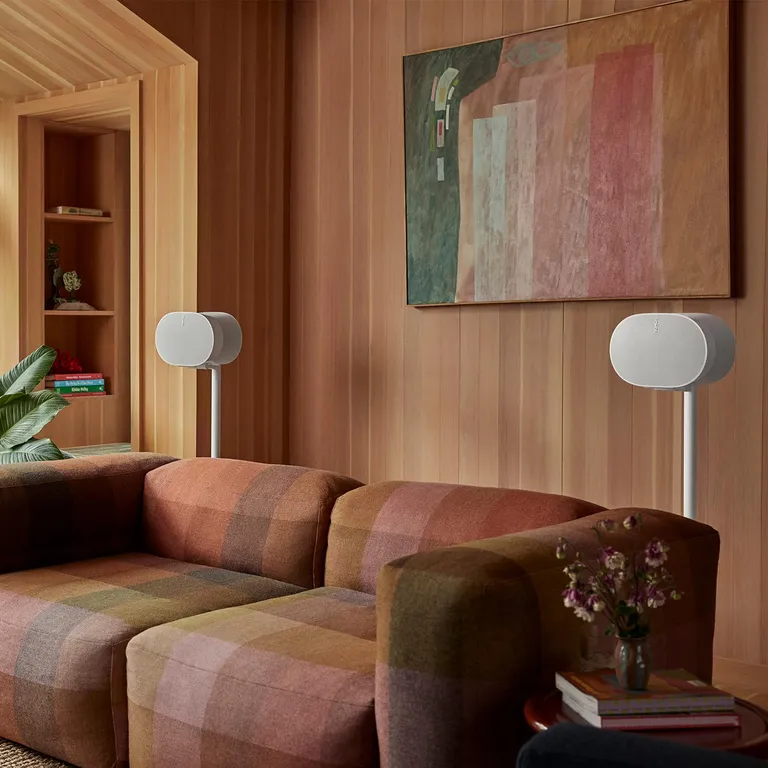 - Je kunt twee exemplaren combineren voor echt L/R-stereogeluid of als draadloze Atmos-achterluidsprekers, eventueel in combinatie met een Sonos-soundbar en/of -subwoofer