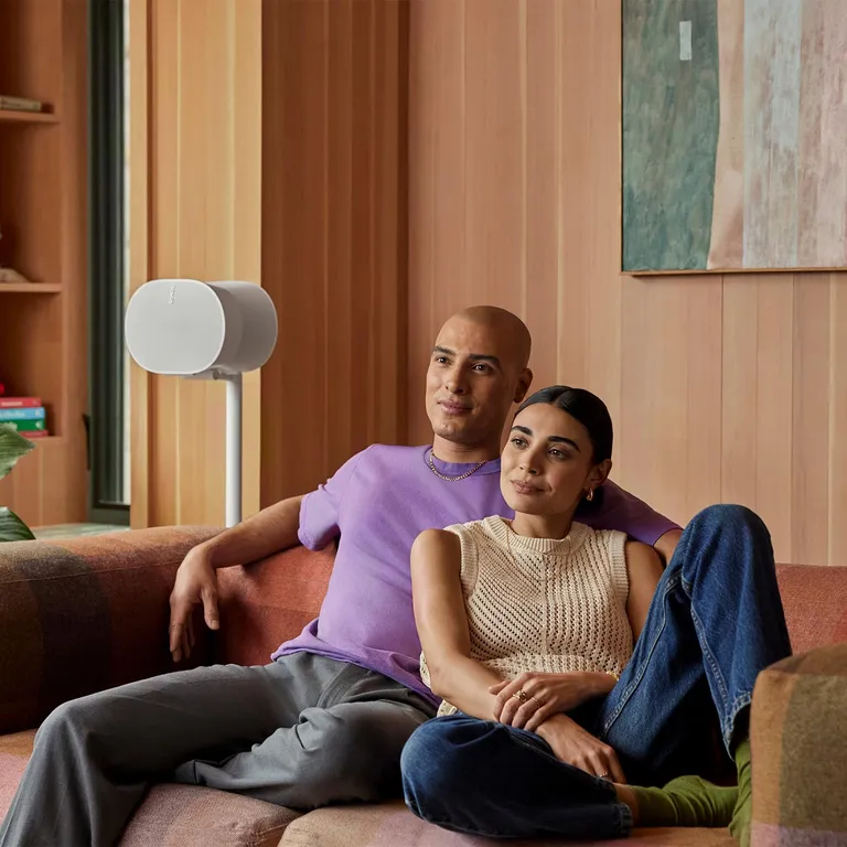 En alhoewel je met één Era 300 nooit het stereobeeld van twee luidsprekers krijgt, is het effect toch verrassend goed. Als je nog beter wilt, kun je natuurlijk ook twee Era 300’s combineren tot L/R-stereogeluid. En in combinatie met een bijpassende Sonos-soundbar en eventueel een Sonos-subwoofer kun je ze ook gebruiken als draadloze achterluidsprekers van je Dolby Atmos-surroundsysteem. Dan krijg je een massief en overtuigend geluid in je home-cinema – zonder gedoe of kabels door je hele woonkamer.