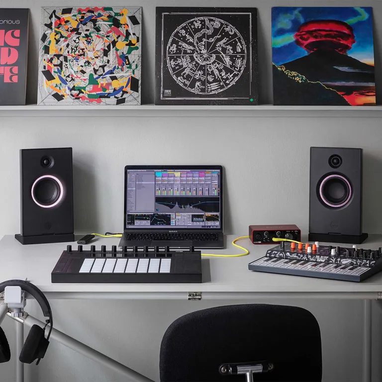 De standaard zorgt voor een passende hoek van de luidspreker ten opzichte van je luisterpositie, terwijl je tegelijkertijd een groot deel van de ongewenste reflecties van het bureau vermijdt. Je kunt ook de luidsprekers naar beneden kantelen als je ze hoog hebt geplaatst.
