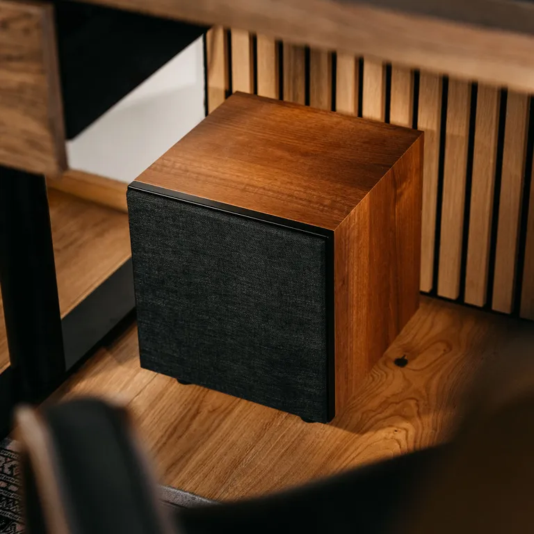 Onze oren kunnen de richting van lage tonen niet echt goed bepalen, en dus maakt het niet zoveel uit waar je de MALMÖ SUB 8 neerzet. Als je hem bijvoorbeeld in een hoek zet, krijg je nog wat extra bas, zonder de subwoofer extra te belasten. Een subwoofer die in een hoek staat, levert namelijk nog meer geluidsdruk omdat het geluid akoestisch versterkt wordt door de wanden en de vloer. En omdat de baspoort naar beneden is gericht, kun je hem echt overal kwijt. Probeer het zelf maar en zet de subwoofer neer waar hij het beste klinkt.