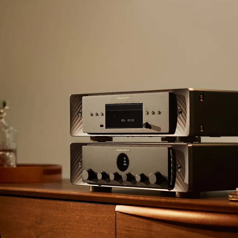 De voorkant en de knoppen zijn gemaakt van aluminium. En als je nog steeds CD’s gebruikt, kun je er natuurlijk een CD-speler van Marantz op aansluiten. Sluit twee goede hifi-luidsprekers aan en geniet van je muziek – elke keer dat je deze versterker aanzet.