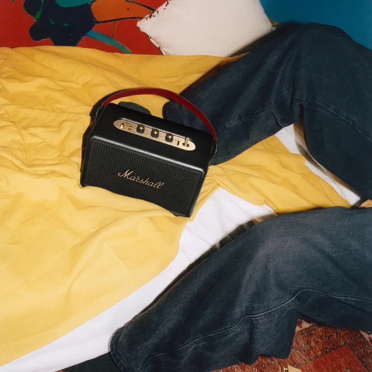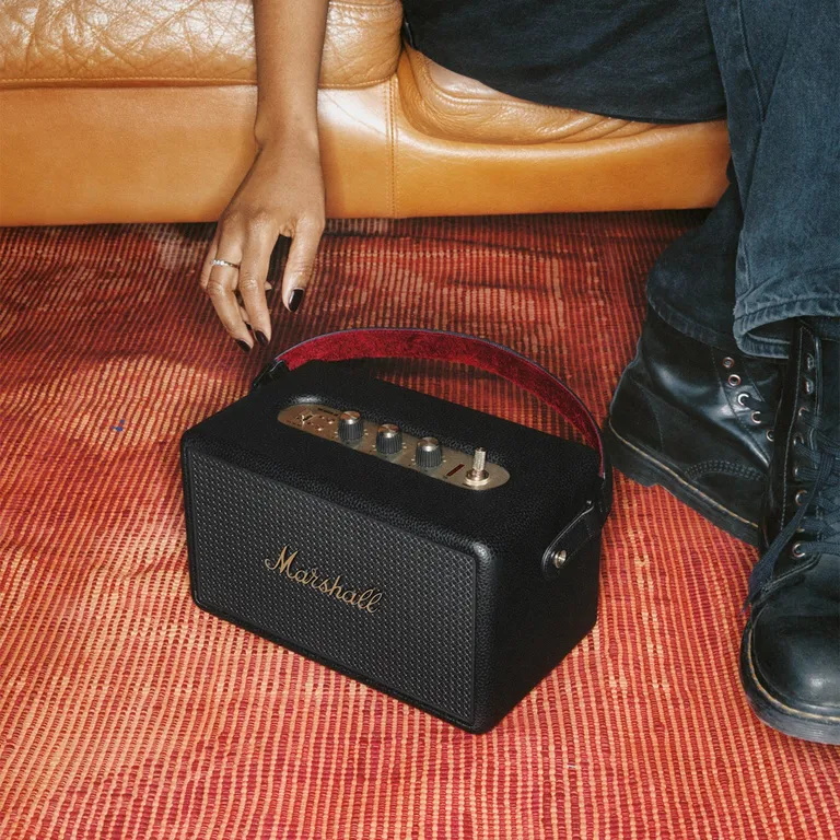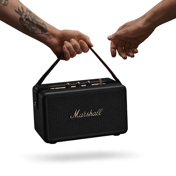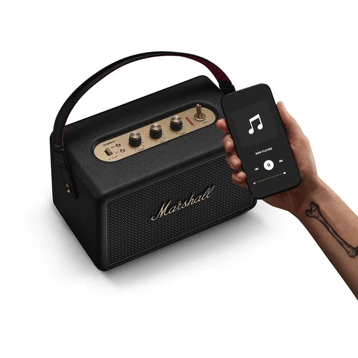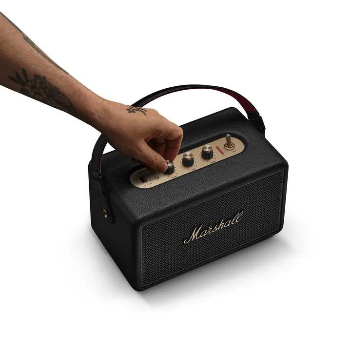 Marshall Kilburn III – compacte Bluetooth-luidspreker op batterij met een iconisch rock’n’roll-design, spatwaterbestendige behuizing en meer dan 50 uur speeltijd