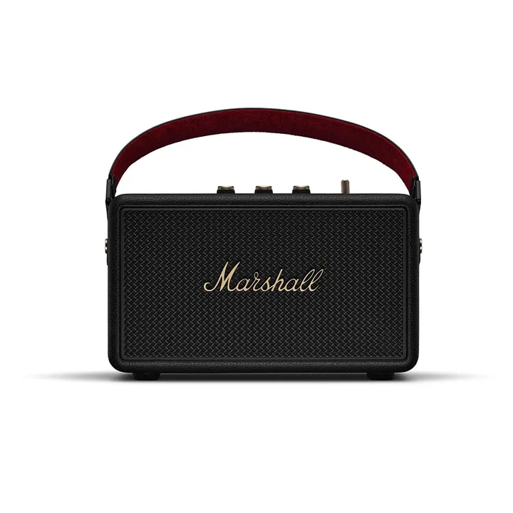 De Kilburn III is een compacte, draagbare Bluetooth-luidspreker met een batterij die meer dan 50 uur meegaat. Perfect om samen met je vrienden van muziek te genieten – in het vakantiehuisje, op reis of gewoon thuis zonder een stopcontact in de buurt. Het ontwerp is geïnspireerd op Marshalls legendarische gitaarversterkers, met een stoer metalen rooster, het iconische Marshall-logo en bedieningselementen aan de bovenkant. De draagriem is gevoerd met luxe rood velours, net zoals je ziet bij veel gitaarkoffers.