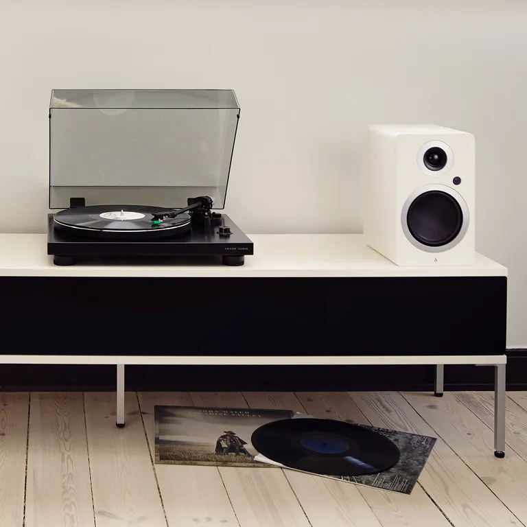 De Argon Audio TT-3 is een eenvoudige en solide hifi-draaitafel met een draaiplateau van aluminium. De TT-3 heeft snaaraandrijving en wordt handmatig bediend. Kortom, een serieuze draaitafel die lang meegaat, makkelijk te bedienen is en geweldig klinkt – en hij is ook nog eens heel betaalbaar. De finish past heel goed bij de actieve luidsprekers uit de FORTE-serie en FENRIS-serie van Argon Audio, voor een extra elegante look.