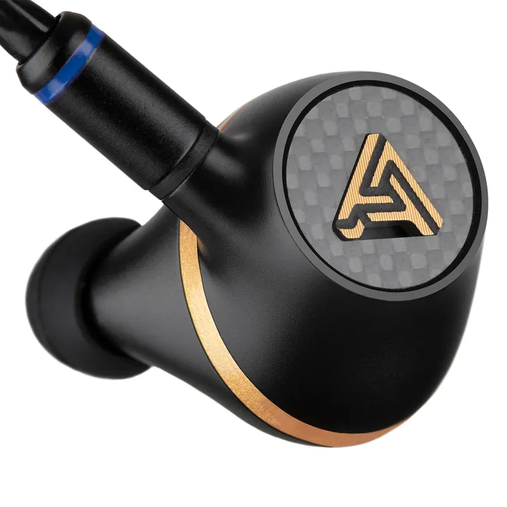 De behuizing is gemaakt van gegoten aluminium met een elegante bekleding van koolstofvezel. De bijgeleverde gevlochten kabel met MMCX-aansluiting is heel comfortabel en kan vervangen worden door kabels van andere fabrikanten. Dankzij de extreme gevoeligheid van 105 dB kun dat een geluidsdruk opleveren van wel 120 dB. Dat hou je natuurlijk niet lang vol, maar je kunt wel genieten van de schitterende dynamiek – ook op normaal volume.