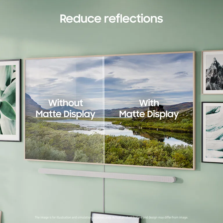 De lichtsensor van de Frame past automatisch de helderheid en kleuren van het scherm aan op basis van het licht rond de TV, zodat het kunstwerk altijd zijn natuurlijke kleuren behoudt. The Frame heeft een ingebouwd geheugen zodat je duizenden afbeeldingen in hoge resolutie kunt opslaan. Je kunt je foto's ook overzetten naar The Frame vanaf je mobiele telefoon of USB-stick om je eigen meesterwerken te laten zien. Je kunt de presentatie van je foto's aanpassen en ze inlijsten met realistische passepartouts om ze er nog mooier uit te laten zien. Je kunt kiezen uit een breed scala aan matten en kleuren.