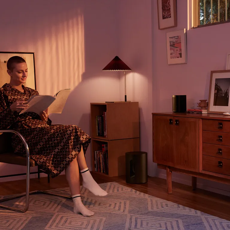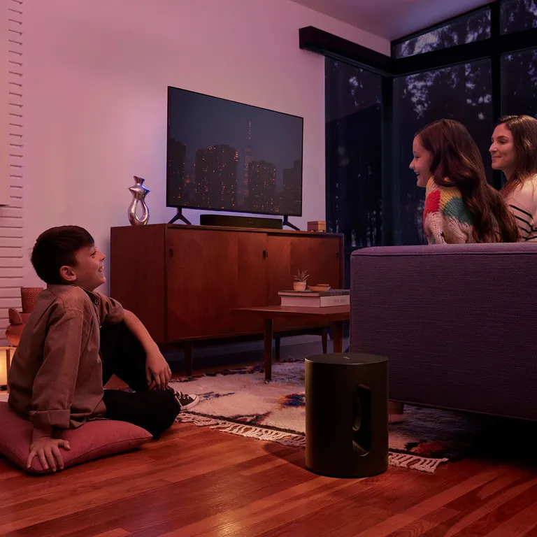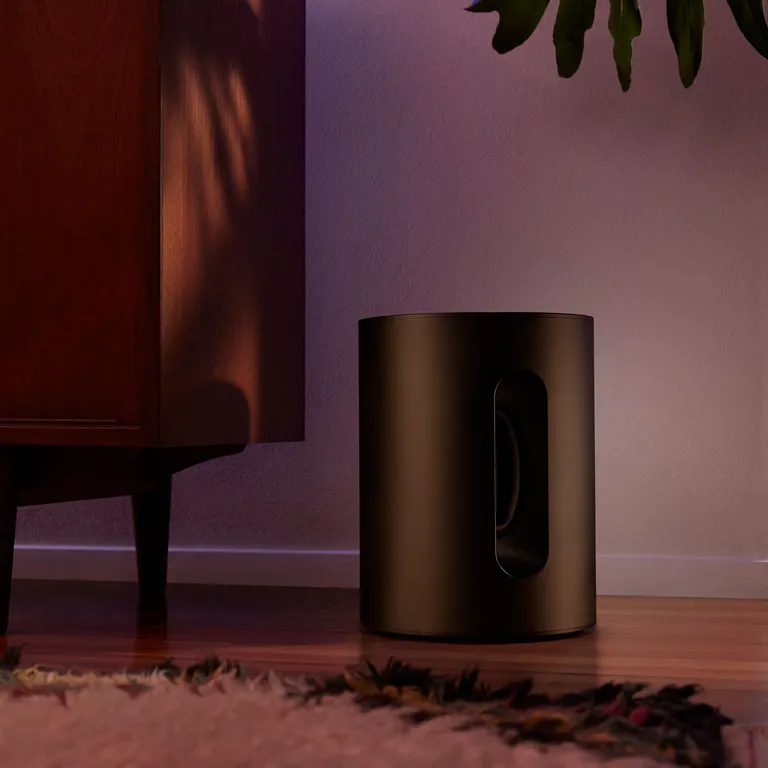 En je kunt de Sub Mini echt overal neerzetten – bijvoorbeeld in een hoek, naast een meubel of onder de tafel. Als je klaar bent met de installatie, kun je met de Trueplay-functie het geluid aanpassen, zodat het perfect klinkt in jouw kamer (iOS-apparaat nodig voor microfoonmeting).