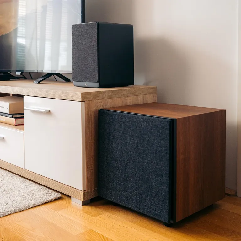 Onze oren kunnen de richting van lage tonen niet echt goed bepalen, en dus maakt het niet zoveel uit waar je de MALMÖ SUB 10 neerzet. Als je hem bijvoorbeeld in een hoek zet, krijg je nog wat extra bas, zonder de subwoofer extra te belasten. Een subwoofer die in een hoek staat, levert namelijk nog meer geluidsdruk omdat het geluid akoestisch versterkt wordt door de wanden en de vloer. En omdat de baspoort naar beneden is gericht, kun je hem echt overal kwijt. Probeer het zelf maar en zet de subwoofer neer waar hij het beste klinkt.