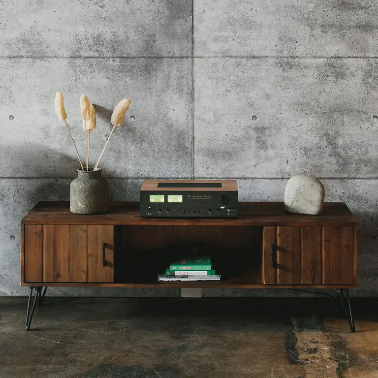 De binnenkant is echter allesbehalve retro. Hier zit een hypermoderne HybridDigital-versterker met digitale ingangstrap en NAD’s eigen versie van de UcD-eindversterker. Hij heeft een vermogen van 2 x 100 watt, zodat hij zelfs de meest veeleisende luidsprekers aankan. Ook heeft hij meer dan genoeg aansluitingen voor analoge en digitale bronnen, inclusief 24-bit HD-geluid en een aparte draaitafelingang (MM). Daarnaast beschikt hij over een koptelefoonuitgang die is uitgerust met een eigen, geïntegreerde en hoogwaardige koptelefoonversterker.