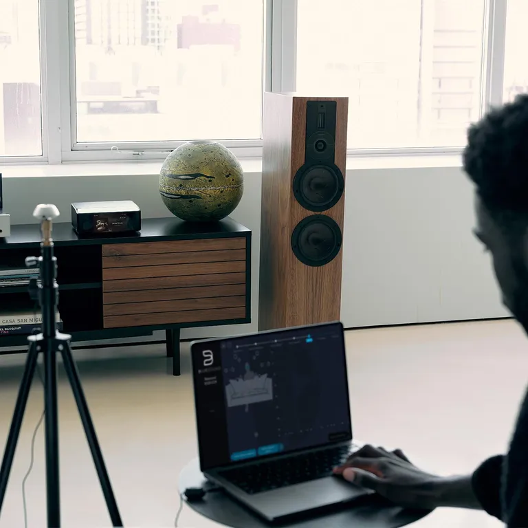 De NODE ICON is klaar voor het geavanceerde Dirac Live-systeem voor digitale ruimtecorrectie. Als je online een licentie hebt gekocht, kun je via een meetmicrofoon (apart verkrijgbaar) en een smartphone/tablet/PC/Mac de audiorespons op verschillende posities in je luisterkamer meten. Vervolgens corrigeert het systeem de basresonantie en eventuele andere fouten in het geluid.