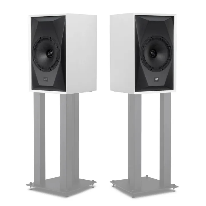De MoFi SourcePoint 8 is verkrijgbaar met verschillende finishes. Inclusief zwarte luidsprekerdoek, vloerstandaard apart verkrijgbaar,