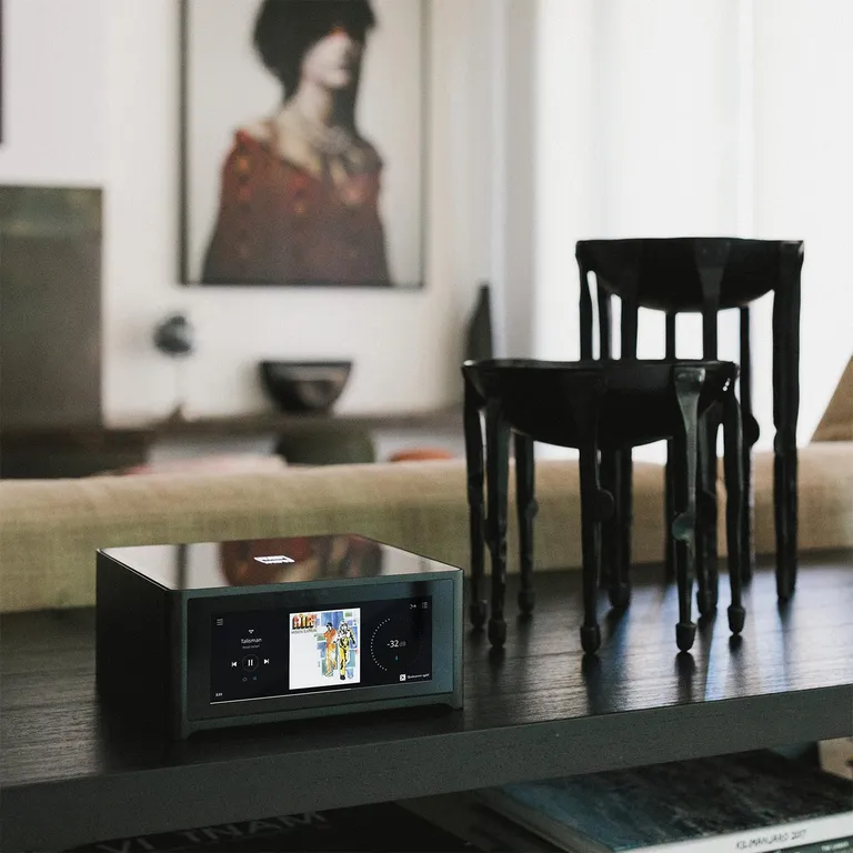 Als je het aandurft, kun je de M10 V3 ook zonder problemen uit het zicht plaatsen, bijvoorbeeld in een hifi-meubel van unnu of clic. Je kunt nog steeds alles bedienen via de geweldige Bluesound-app, of de basisfuncties regelen met de meegeleverde IR-afstandsbediening, zelfs als je stoffen deuren op je meubel hebt gekozen.
