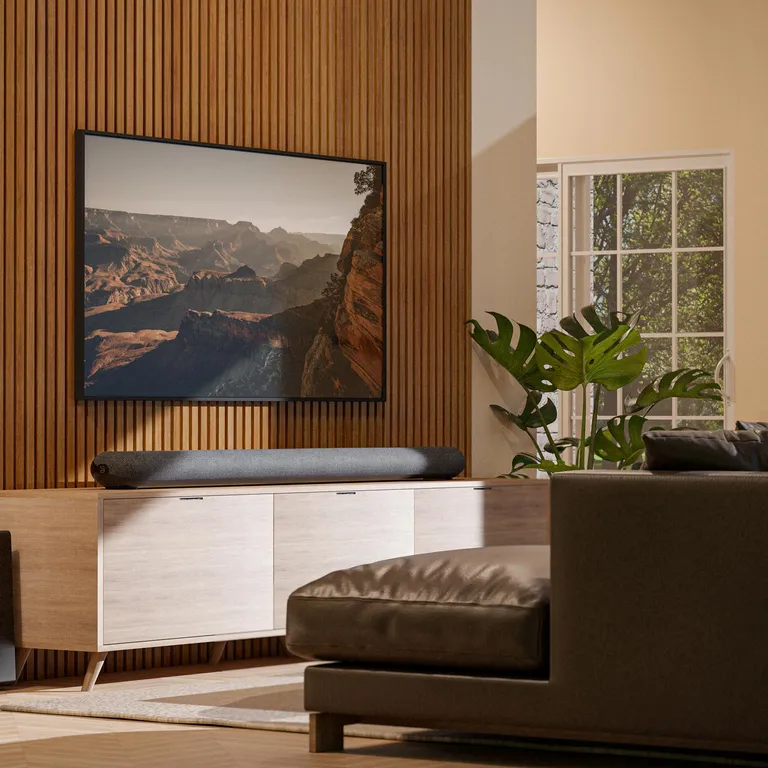 PULSE CINEMA is stijlvol en solide uitgevoerd in met textiel bekleed aluminium, wat de exclusieve uitstraling benadrukt. Deze soundbar is een elegante aanvulling op je interieur, of je hem nu op een plank onder de TV plaatst of aan de muur hangt met de meegeleverde beugel. Het geluid wordt automatisch aangepast aan de gekozen plaatsing.