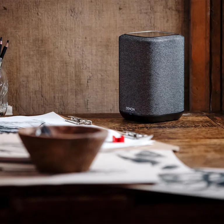 Denon Home 150 – supercompacte draadloze luidspreker met goed geluid, HEOS-multiroom, Bluetooth, exclusieve finish van stof en eenvoudige bediening