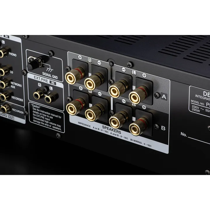 - Dubbele luidsprekeraansluitingen voor bi-wiring of twee paar luidsprekers
