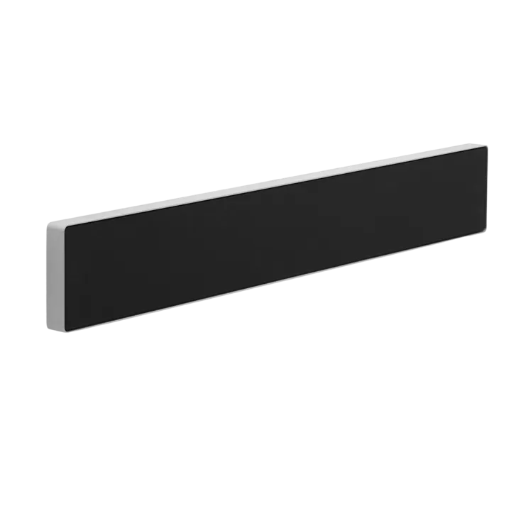 De Beosound Stage is 110 cm breed, maar dankzij het discrete en slanke ontwerp is hij toch heel compact en elegant, of hij nu aan de muur hangt of op een TV-meubel staat. De behuizing is gemaakt van echt aluminium of hout, en de exclusieve luidsprekerdoek van Kvadrat (Bronze Tone/Smoked Oak) laat zien dat het om een exclusief kwaliteitsproduct gaat.