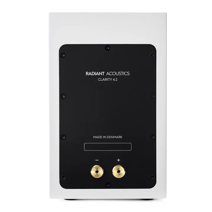 Het geluid van de Clarity 4.2 is uitzonderlijk zuiver, dynamisch en diep voor een supercompacte luidspreker, en hij vult met gemak een normale woonkamer – zelfs zonder subwoofer. Er is een bijpassende vloerstandaard verkrijgbaar van Radiant Acoustics, zodat je de luidspreker gemakkelijk kunt plaatsen op de plek die het beste past bij jouw interieur.