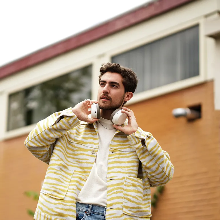 De Sennheiser MOMENTUM 4 Wireless gaat automatisch aan als je hem openklapt. Wil je iets zeggen tegen degene die naast je zit? Hang hem dan om je nek en de muziek stopt automatisch. En als je weer klaar bent om verder te luisteren, gaat hij automatisch verder waar je gebleven was.