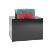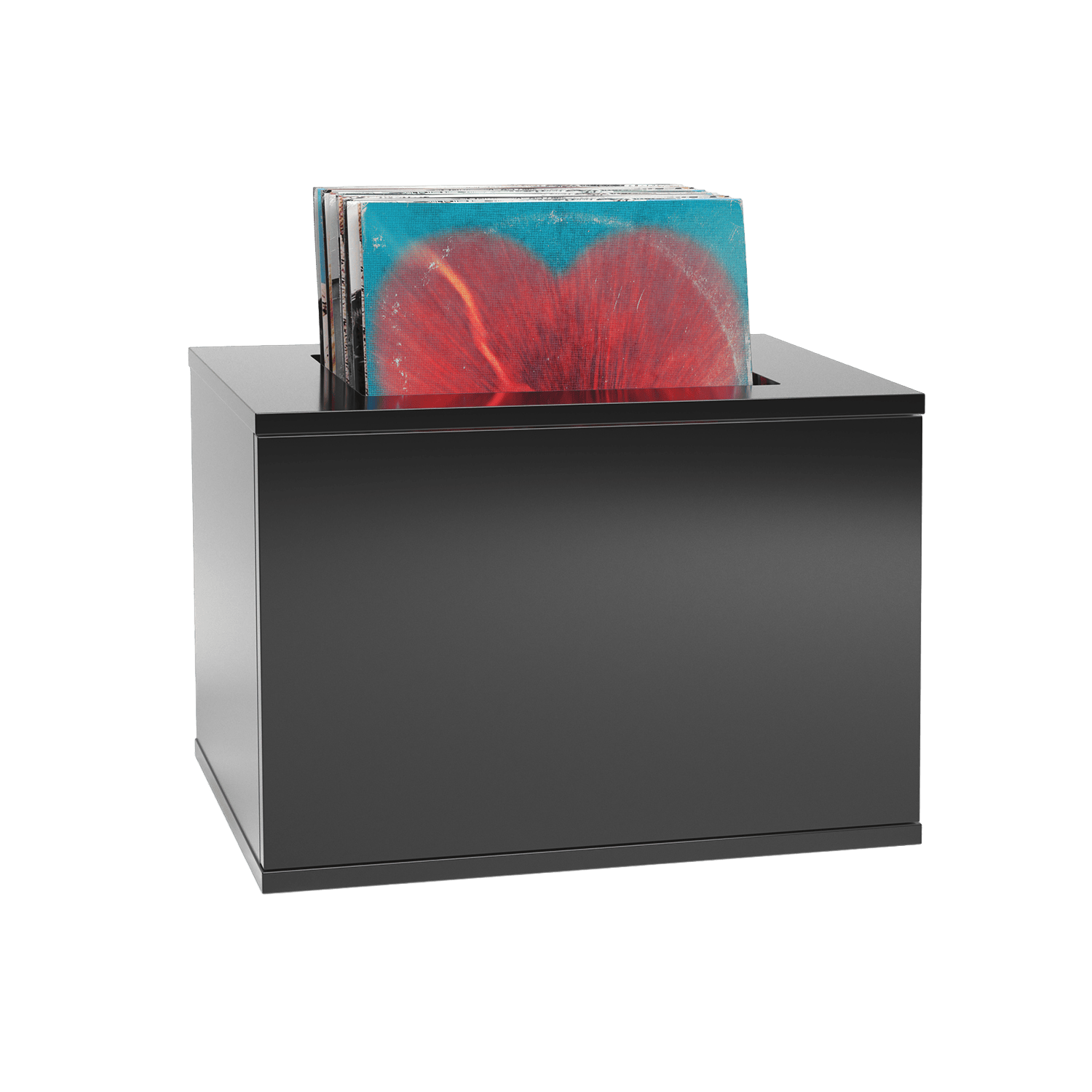 Hifi-meubel voor vinyl. De uitsparing is precies even breed als een platenhoes, zodat iedereen je collectie kan zien. 36,5 cm diep. Zwart of wit.Bekijk ze hier